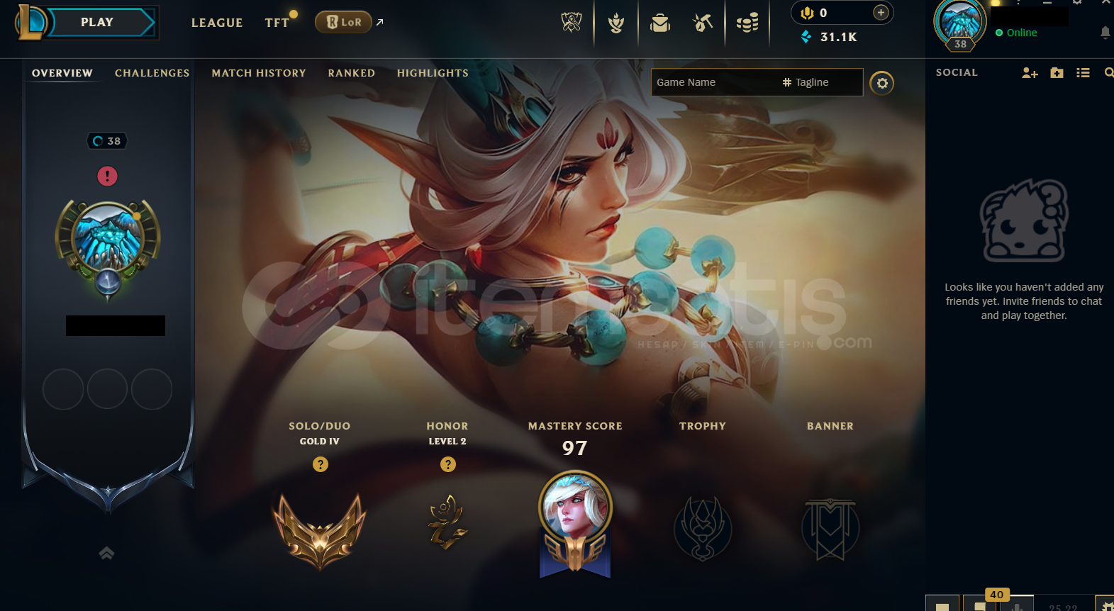 Hesap EUW Tek/Çift Gold 4 - 16 Lp EUW LoL Hesabıdır.