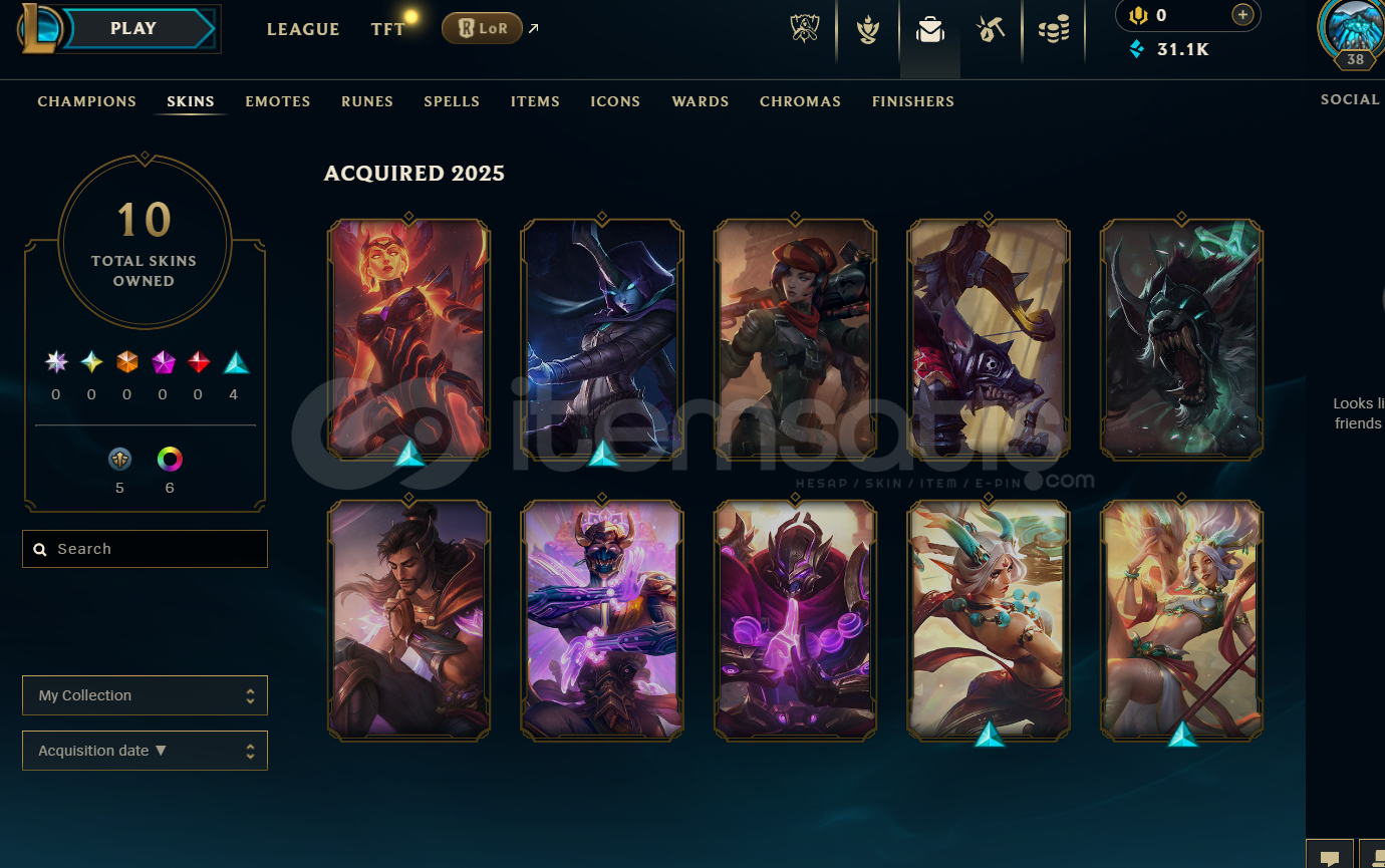 EUW Gold 4 | 10 Kostüm - 31K Mö | LoL Hesap