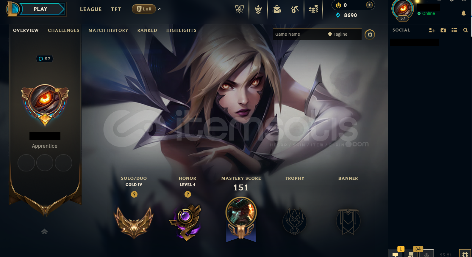 Hesap EUW Tek/Çift Gold 4 - 52 Lp EUW LoL Hesabıdır.