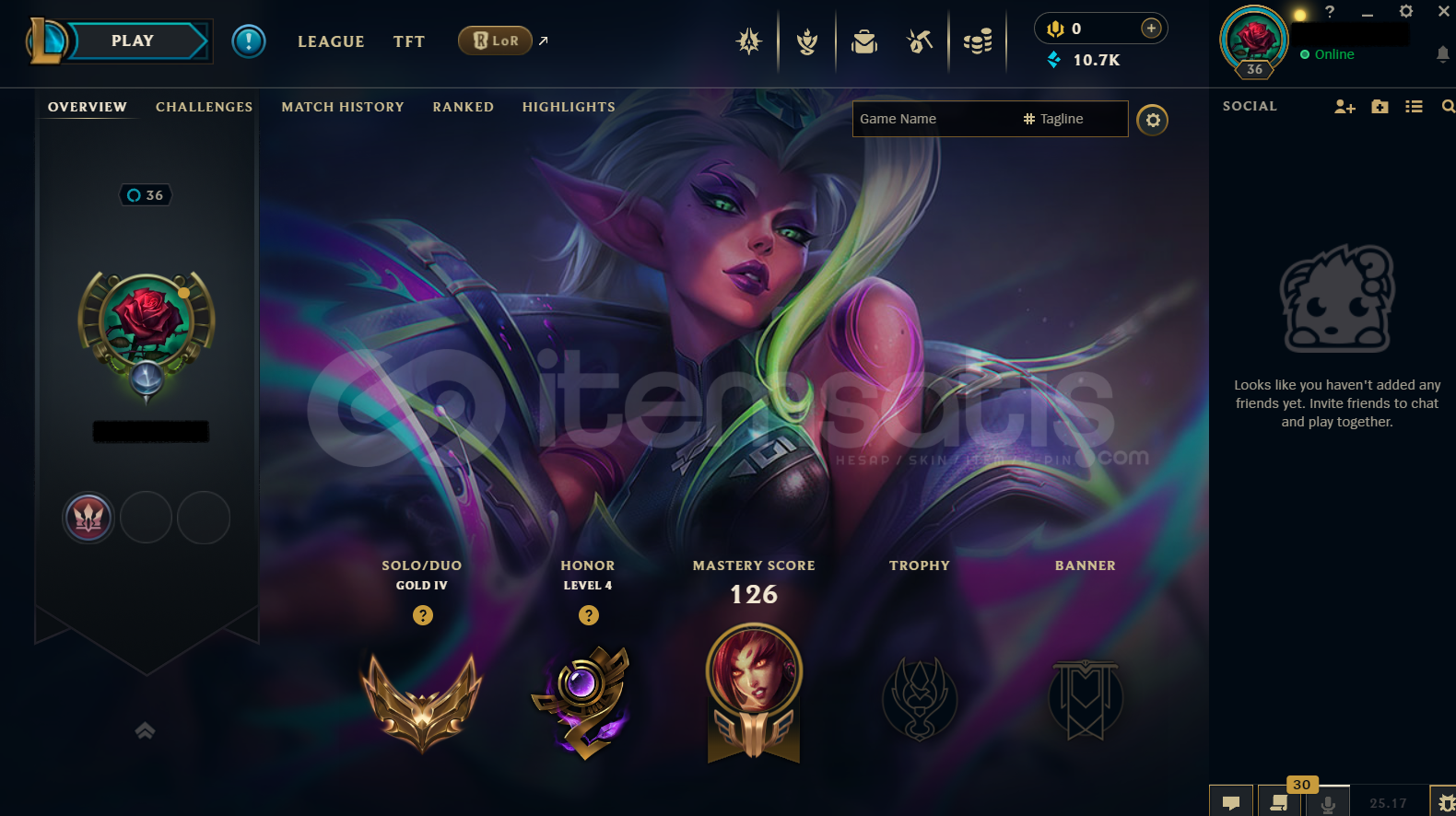 Hesap EUW Tek/Çift Gold 4 EUW LoL Hesabıdır.
