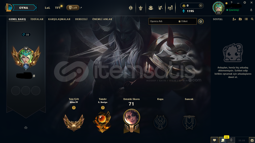 EUW GOLD 4 SMURF ACC YÜKSEKMMR PLAT-ZÜMRÜT ELO
