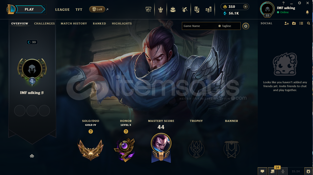 EUW GOLD HESAP / HİGH LP GAIN / 50+WR