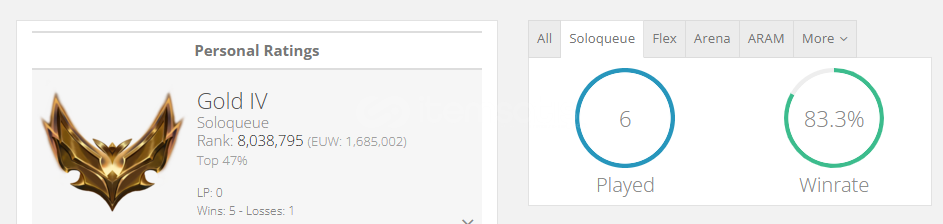 EUW GOLD IV +30LP 7 SKIN PRE OP 83WR