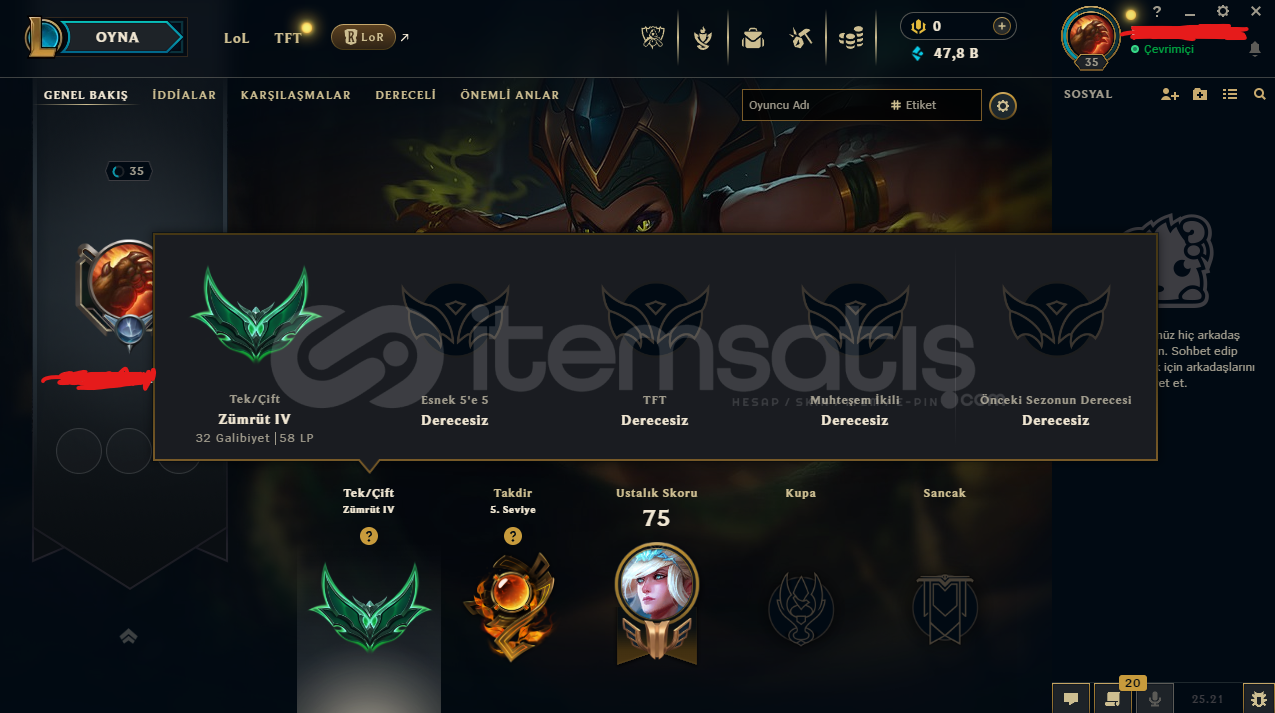 EUW HANDMADE EMERALD 4/70WR/47K MAVİ ÖZ/TAKDİR 5/GANİMETTE 9 GÜZEL SKİN/HESAPDA 5 SKİN/20 ŞAMPİYON/