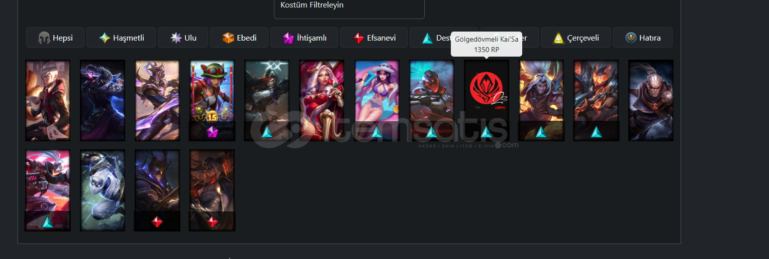 16 skinbani yokhandmadeguncel gold 3honor 4mail degisimi yapilacakmid zed adc main hesapacil satilik