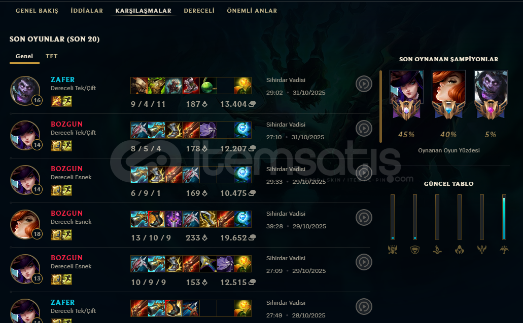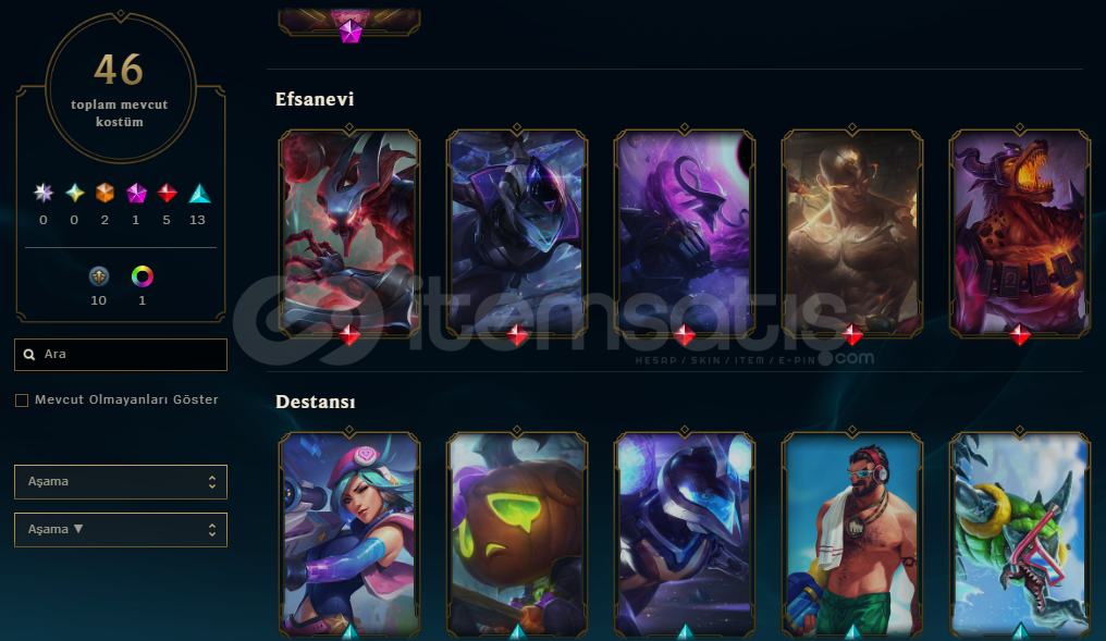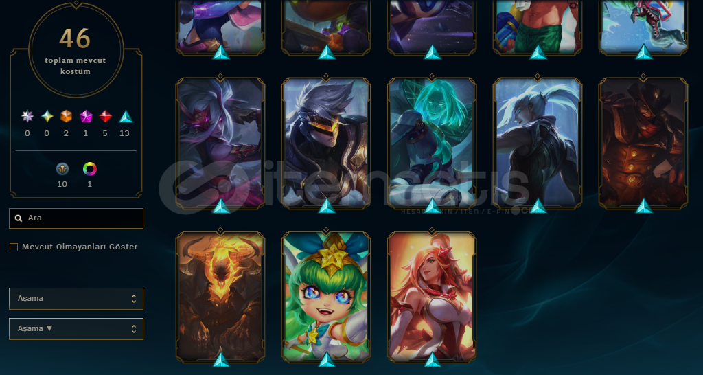 HESAP EUW SERVERHESAPTA 46 ADET SKİN MEVCUTHESAPTA TOPLAM 97 ADET HERO MEVCUTHESAP SEVİYESİ 235 LEVELHESAP SATIN ALDIKTAN SONRA MAİL-ŞİFRE DEĞİŞTİREBİLİRSİNİZ4 SEVİYE TAKTİR