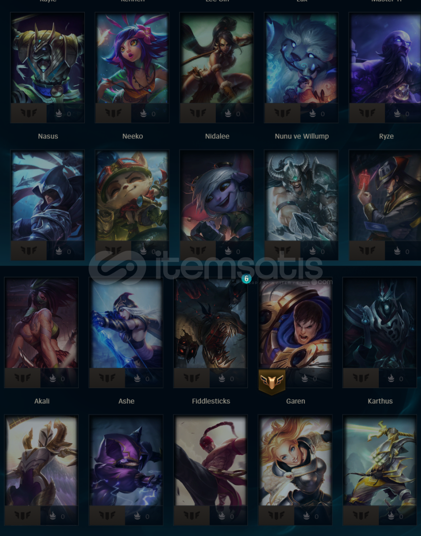 ESKİDEN KALAN HESAPTIR. #2013 / İlk 10 maçtan 7 si atıldı.HERO : 20SKIN : 0MAVİ ÖZ: 8,2K - 100RPLEVEL : 30-///// KOSTÜMLER - ŞAMPİYONLAR /////Lee Sin Lux Twisted Fate Fiddlesticks Kayle Nasus Master Yi Nidalee Ryze Teemo Tristana Akali Nunu & Willump Kennen Garen Ashe Tryndamere Talon Karthus-Hesabı Üzerinize Alırken Adım Adım Yardımcı Oluyoruz.Daha fazlası için mesaj atabilirsiniz.-#GÜVEN...