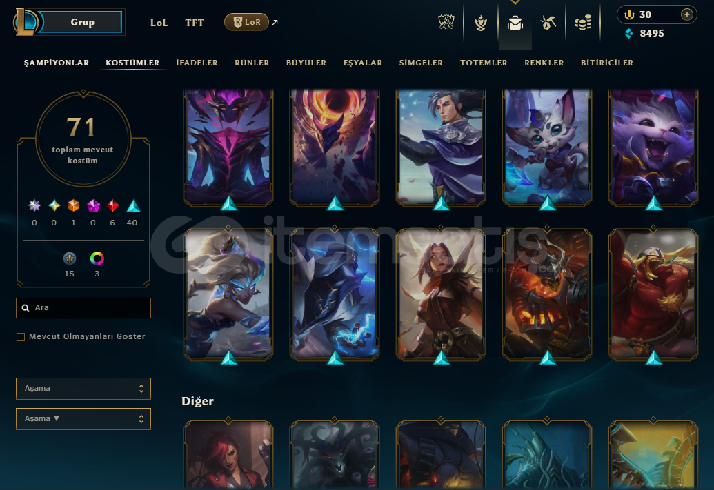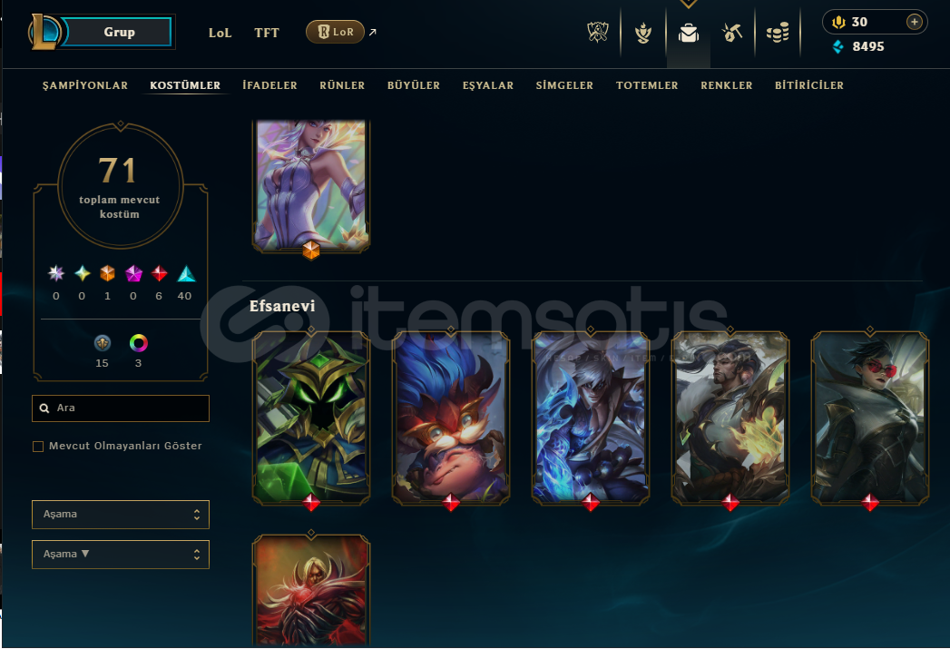 Hesapta 114 Tane Şampiyon, 71 Kostüm, 109 Emoji Vardır.