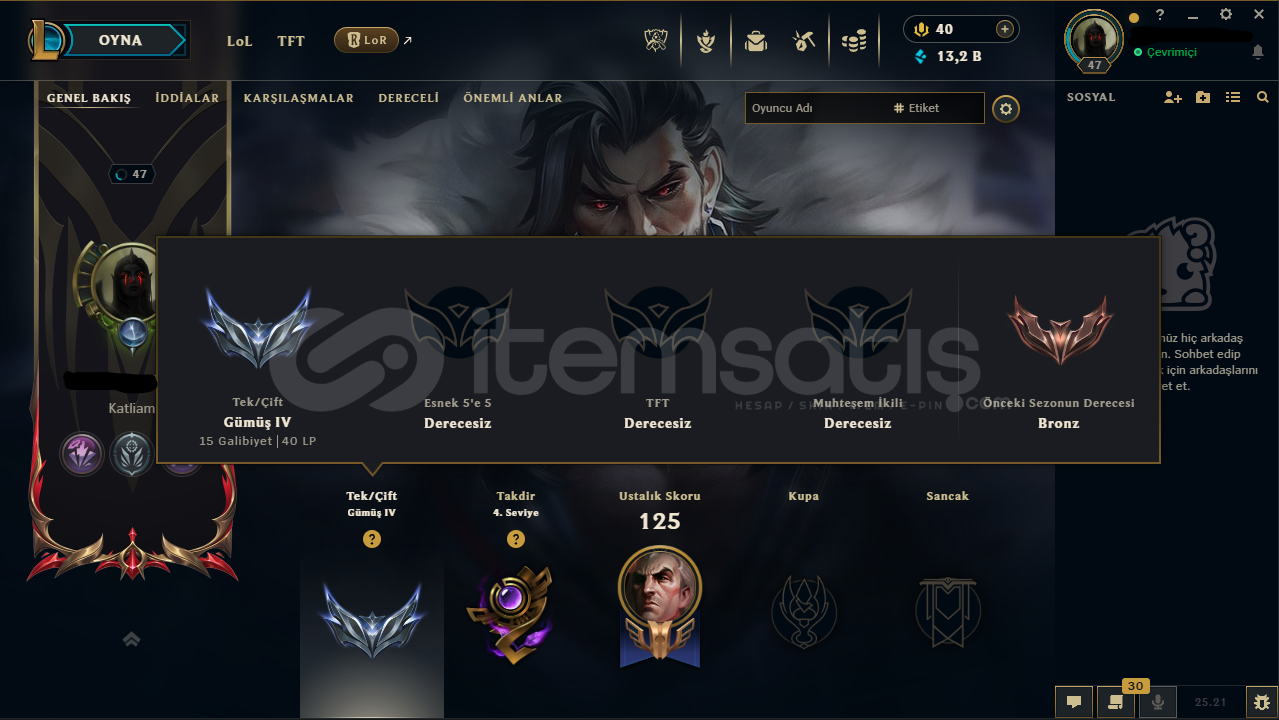 47 Level - SİLVER IV (EUW) Hesaptır.