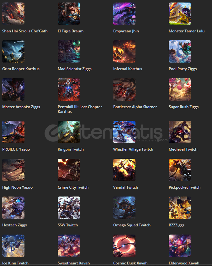 Aşağıda karışık verilen skinlerden istediğinizi aratabilirsiniz: Mevcut olanların hepsi karakter sınırından dolayı burada değildir!.