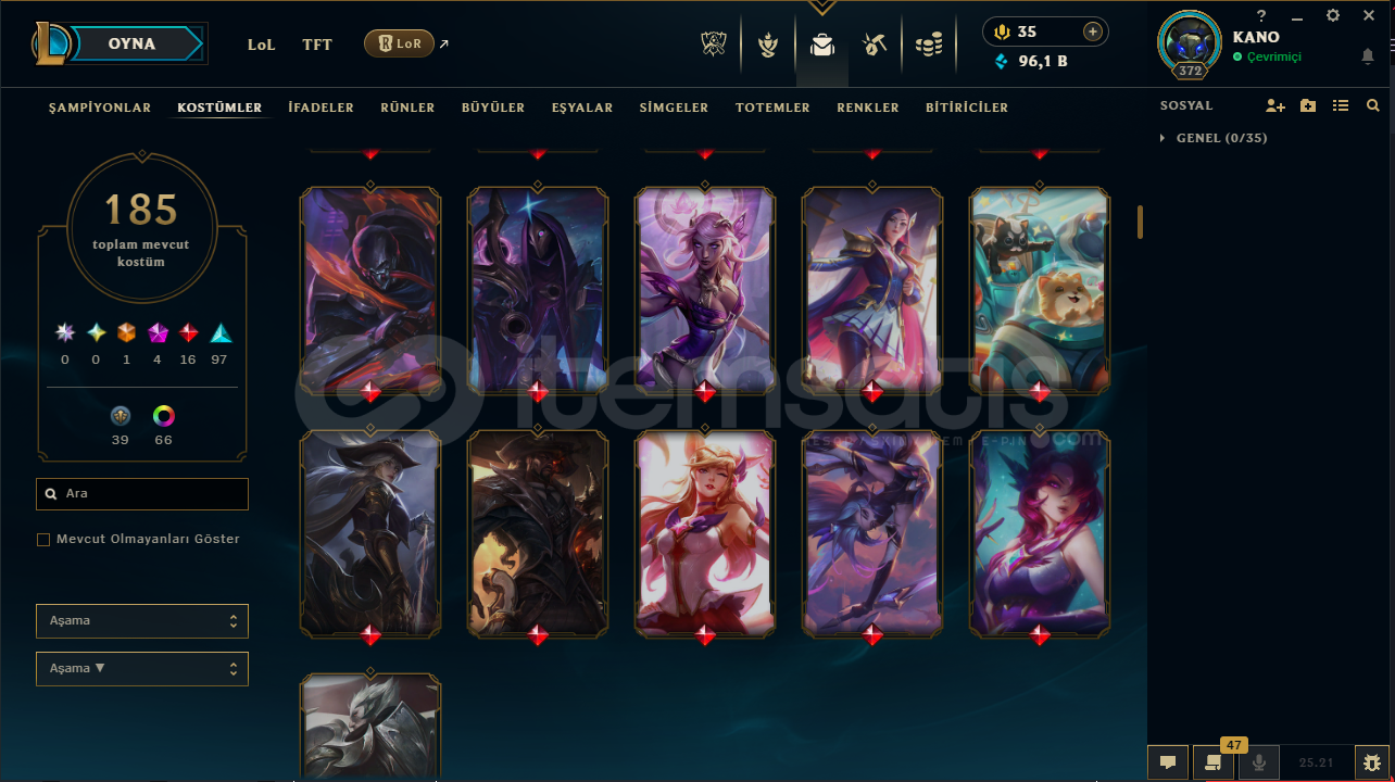 EUW - lol + valo - 185 KOSTÜM - 372 lvl