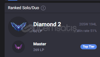 Hesabın peaki Master 269LP mevcut ligi Diamond 2 60LP dir