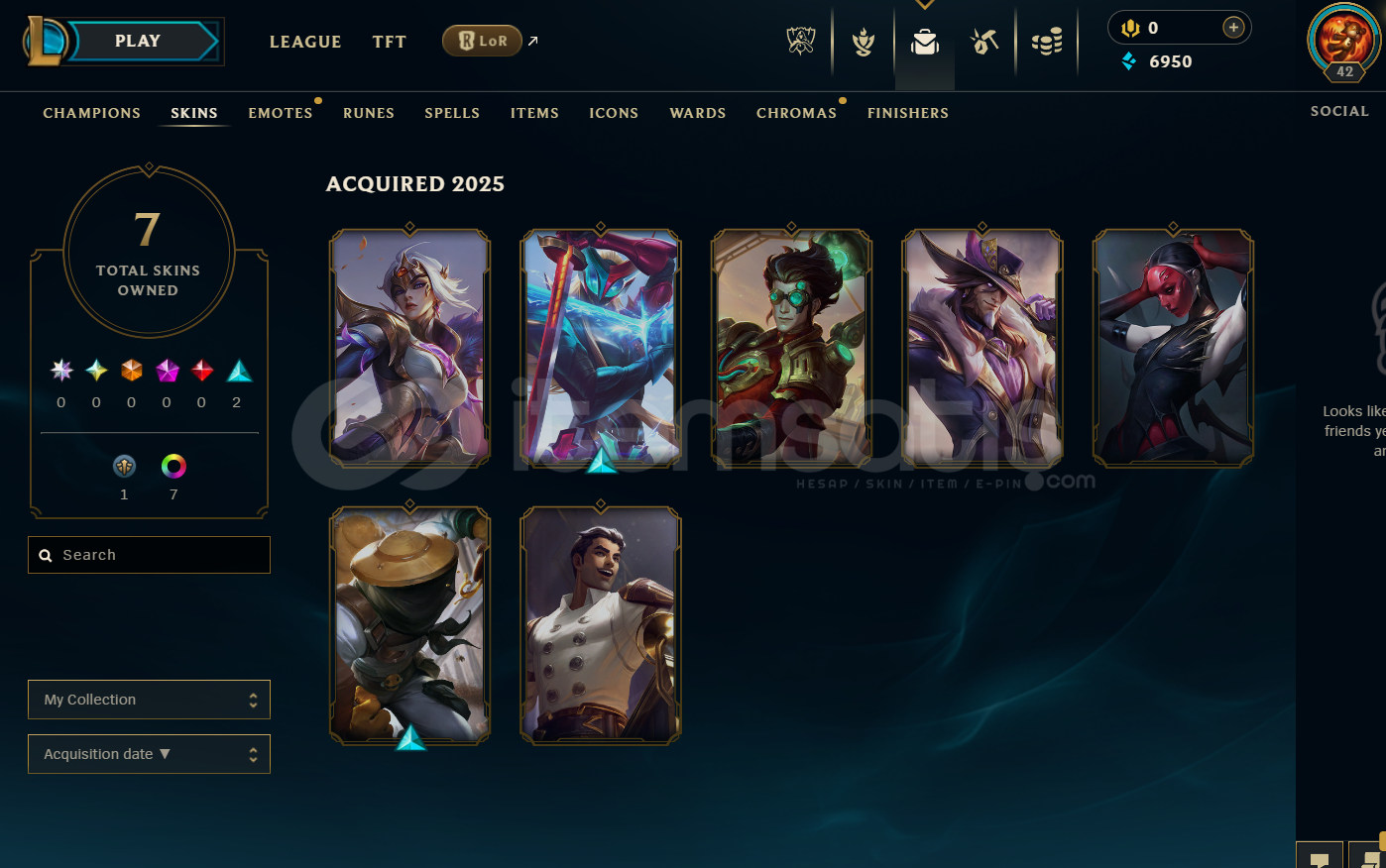 EUW Plat 2 | 7 Kostüm - 53 Hero | LoL Hesap