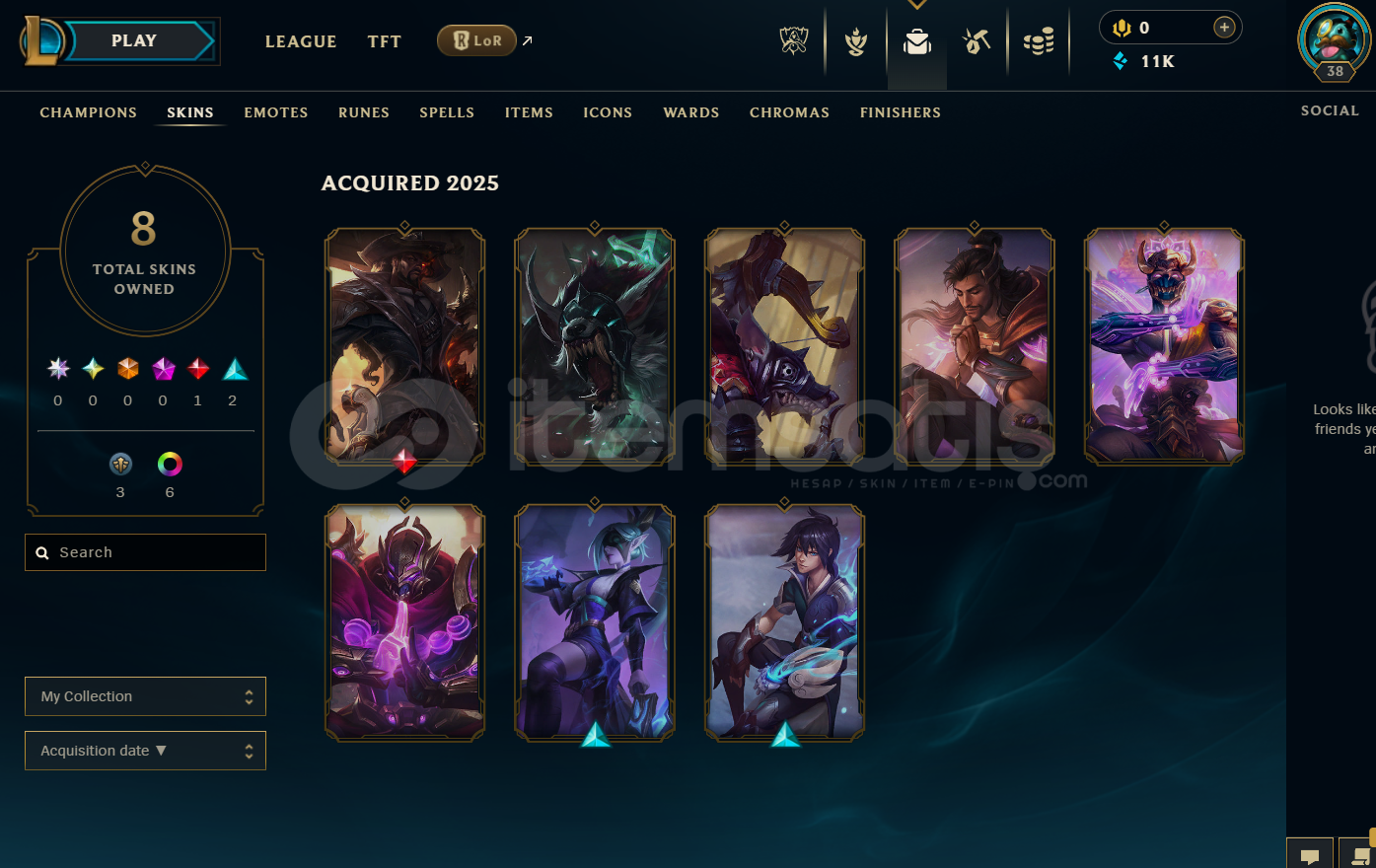 EUW Plat 2 | 8 Kostüm - 11K Mö | LoL Hesap