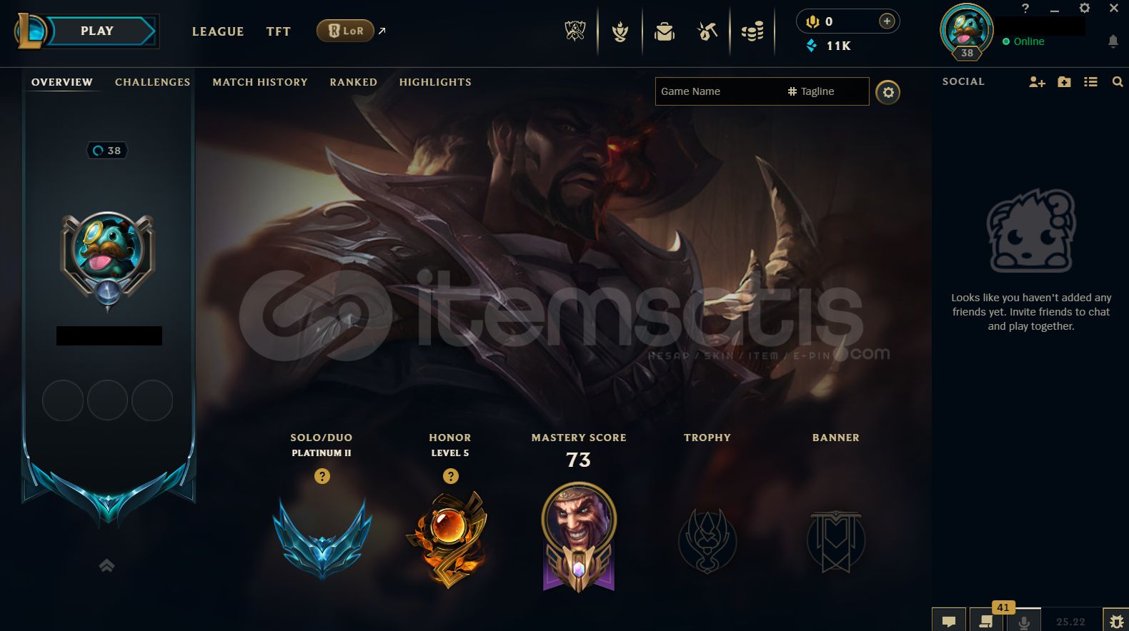 Hesap EUW Tek/Çift Plat 2 - 95 Lp - 60 Winrate - Esnek Plat 3 - 48 Lp EUW LoL Hesabıdır.