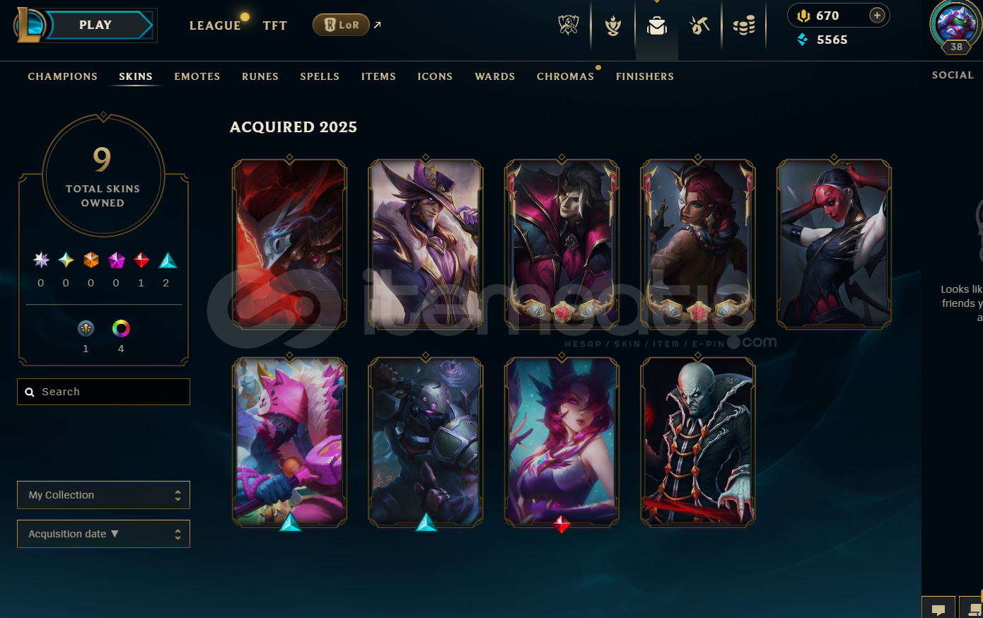 EUW Plat 2 | 9 Kostüm - 670 Rp | LoL Hesap