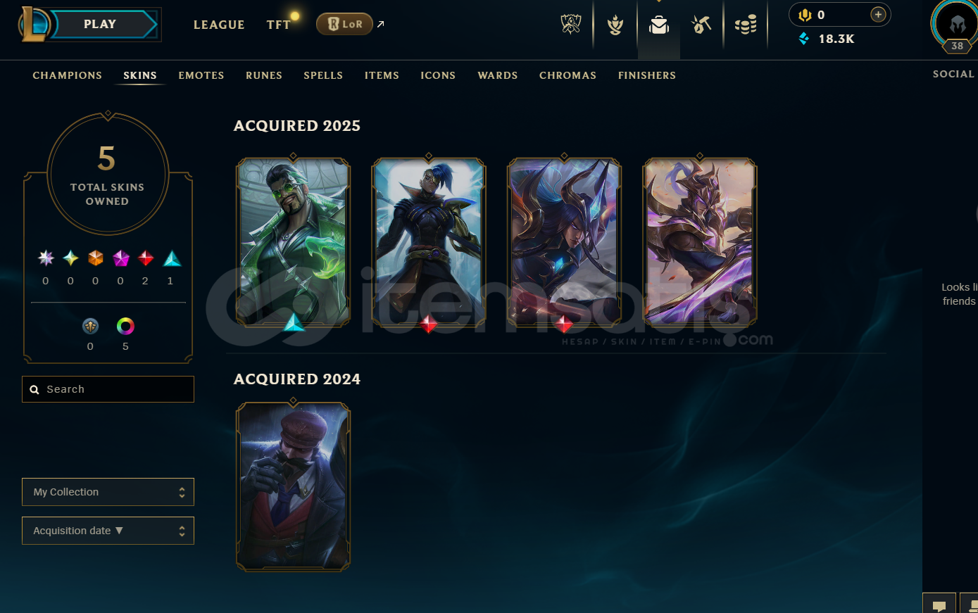 EUW Plat 3 | 5 Kostüm - 18K Mö | LoL Hesap