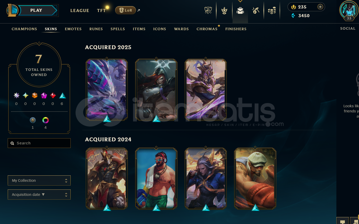 EUW Plat 3 | 7 Kostüm - 22 Hero | LoL Hesap