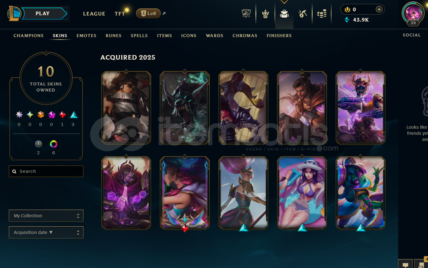 EUW Plat 4 | 10 Kostüm - 43K Mö | LoL Hesap