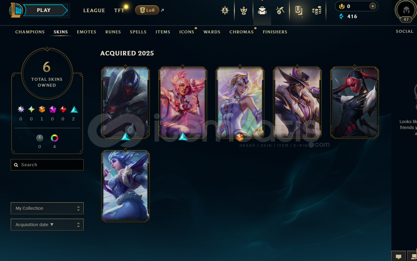 EUW Plat 4 | 6 Kostüm - 40 Hero | LoL Hesap