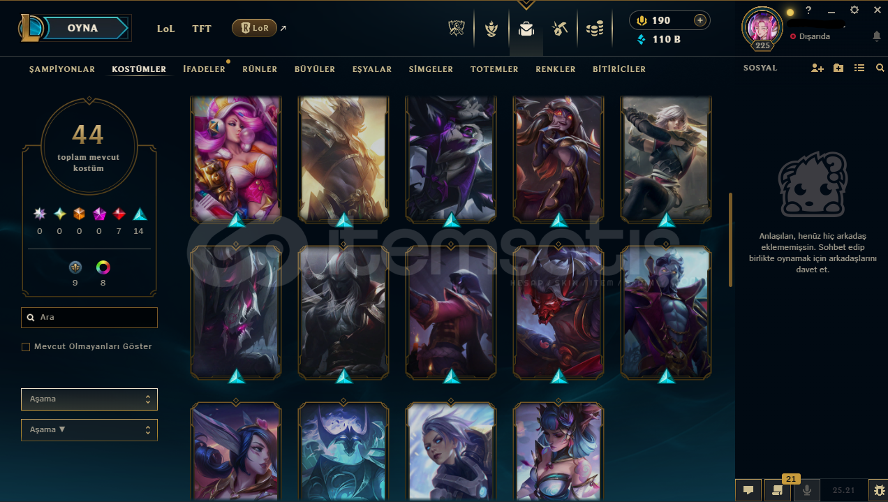 ----------BU HESAP BU FİYATA KAÇMAZ---------Hesabın E-Posta'sı ve Tüm bilgileri değiştirilebilir.Teslimatlar Otomatik Yapılmaktadır, 7/24 satın alır almaz tüm hesap bilgilerine ulaşabilirsiniz...Dereceli Direkt Girilebilir.110K Mavi Öz & 3263 Turuncu Öz + 19 Anahtar + Olarak Açılabilecek 19 kostüm kristali  Bulunmaktadır.Hesabınızı satın aldıktan sonra sizden...