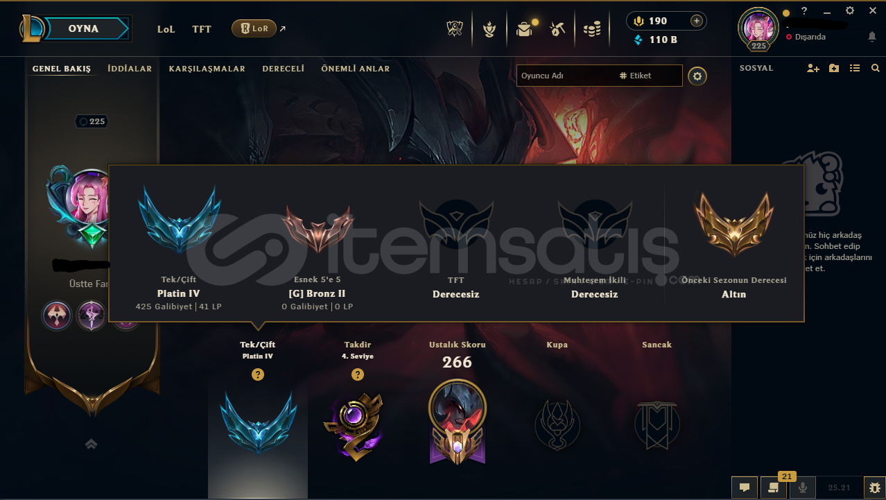 225 Level - PLAT 4(EUW) Hesaptır.