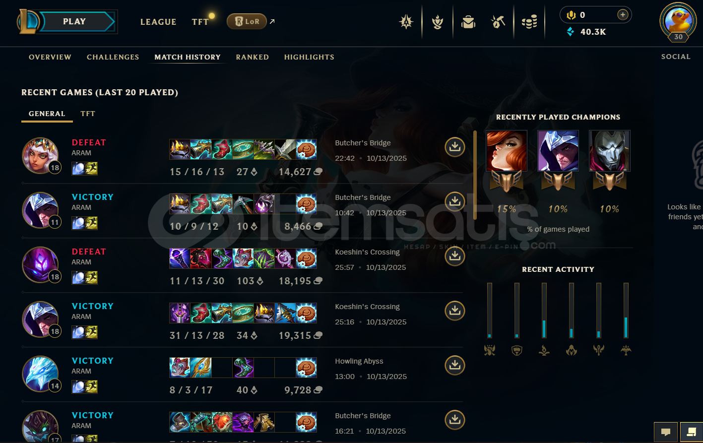 EUW Ranked Hazır Hesap tamamen el ile kasılmıştır; script, hiIe ve bot kullanılmamıştır. Herhangi bir banı yoktur, temiz bir hesaptır. Hesabın mail onayı yapılmamıştır. Takdir seviyesi 4'tür ve 13 sandık ile 12 anahtar bulunmaktadır. (OTOMATIK TESLIM)