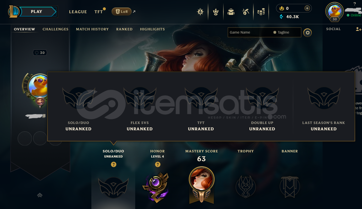 EUW Ranked Hazır Hesap tamamen el ile kasılmıştır; script, hiIe ve bot kullanılmamıştır. 10 sıralı Sihirdar Vadisi oynama zorunluluğu 1 maç atılarak kaldırılmış ve dereceli açılmıştır. Herhangi bir banı yoktur; temiz bir hesaptır. Hesabın mail onayı yapılmamıştır. Takdir seviyesi 4tür ve 13 sandık ile 12 anahtar bulunmaktadı...