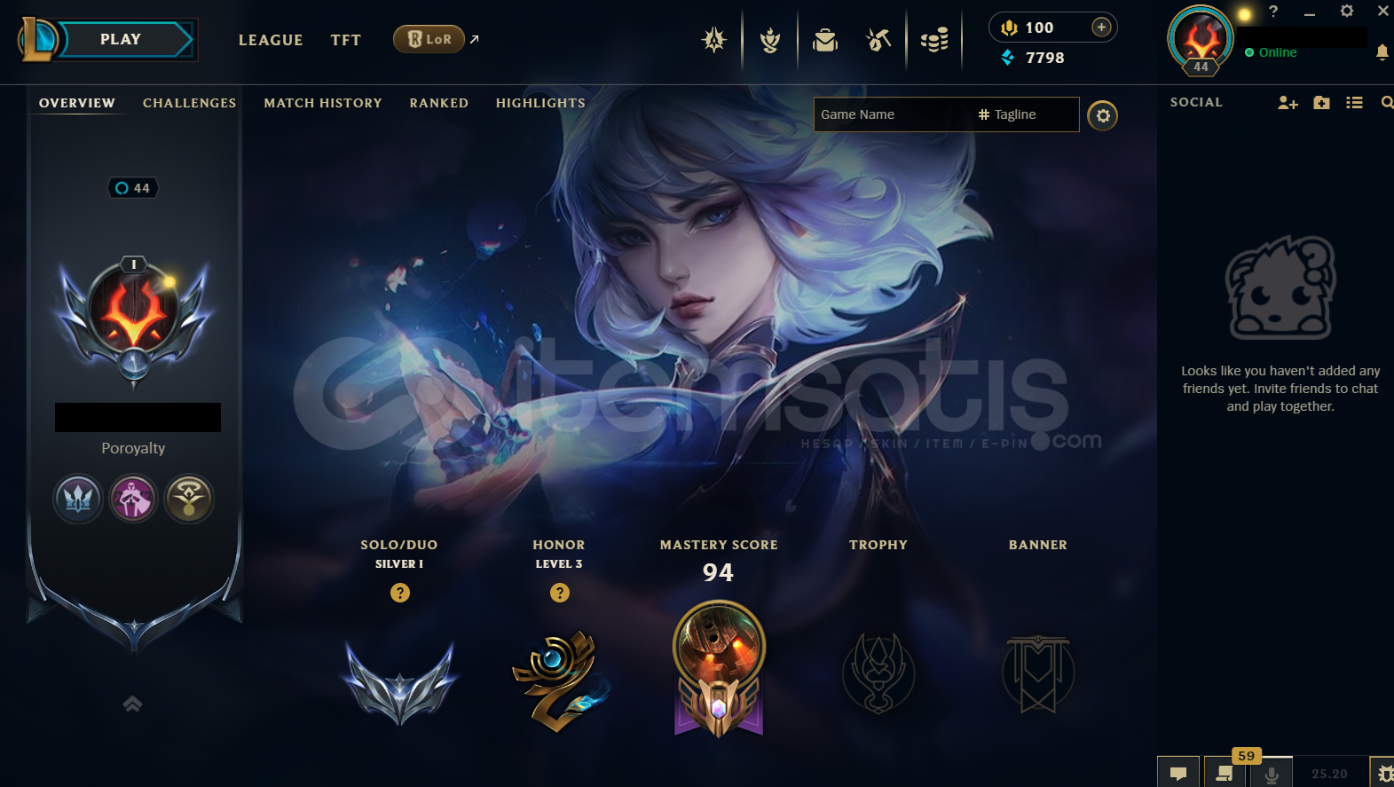 • Hesap EUW Tek/Çift Silver 1 - 30 Lp EUW LoL Hesabıdır.