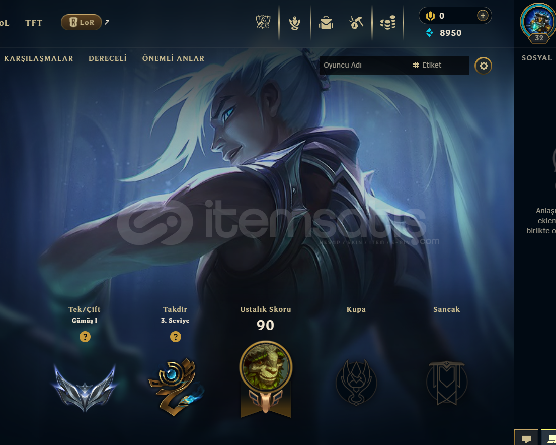 EUW SİLVER 1 / 5 W 6 L / 18 LPSEZON 14 HESABI 2024 DE KURULMUŞTUR32 LV8950 MAVİ ÖZ36 ŞAMPİYON4 KOSTÜM685 TURUNCU ÖZKENDİ MAİLİNİZE DEVREDİLECEKHIZLI TESLİMAT---------------------------------------------Burada mısınız, hemen teslim alabilir miyim gibi sorular sormanıza gerek yoktur, aktif olmasam bile siparişinizden sonra sms geleceğinden teslimat kısa süre içerisinde yapıl...