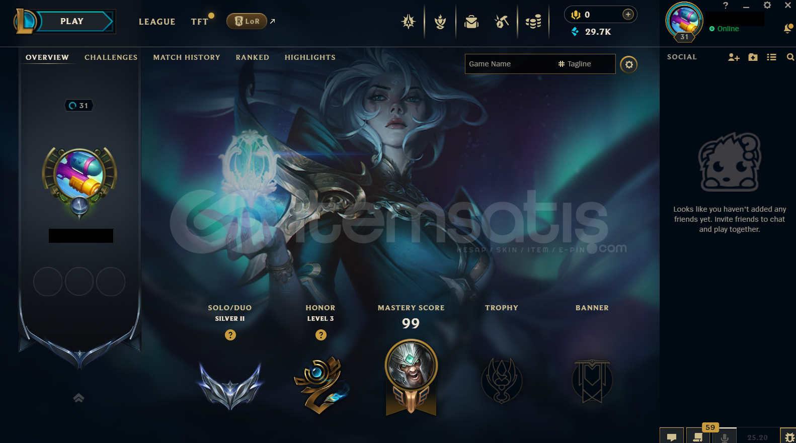 • Hesap EUW Tek/Çift Silver 2 - 76 Lp - 3 Win 3 Lose EUW LoL Hesabıdır.