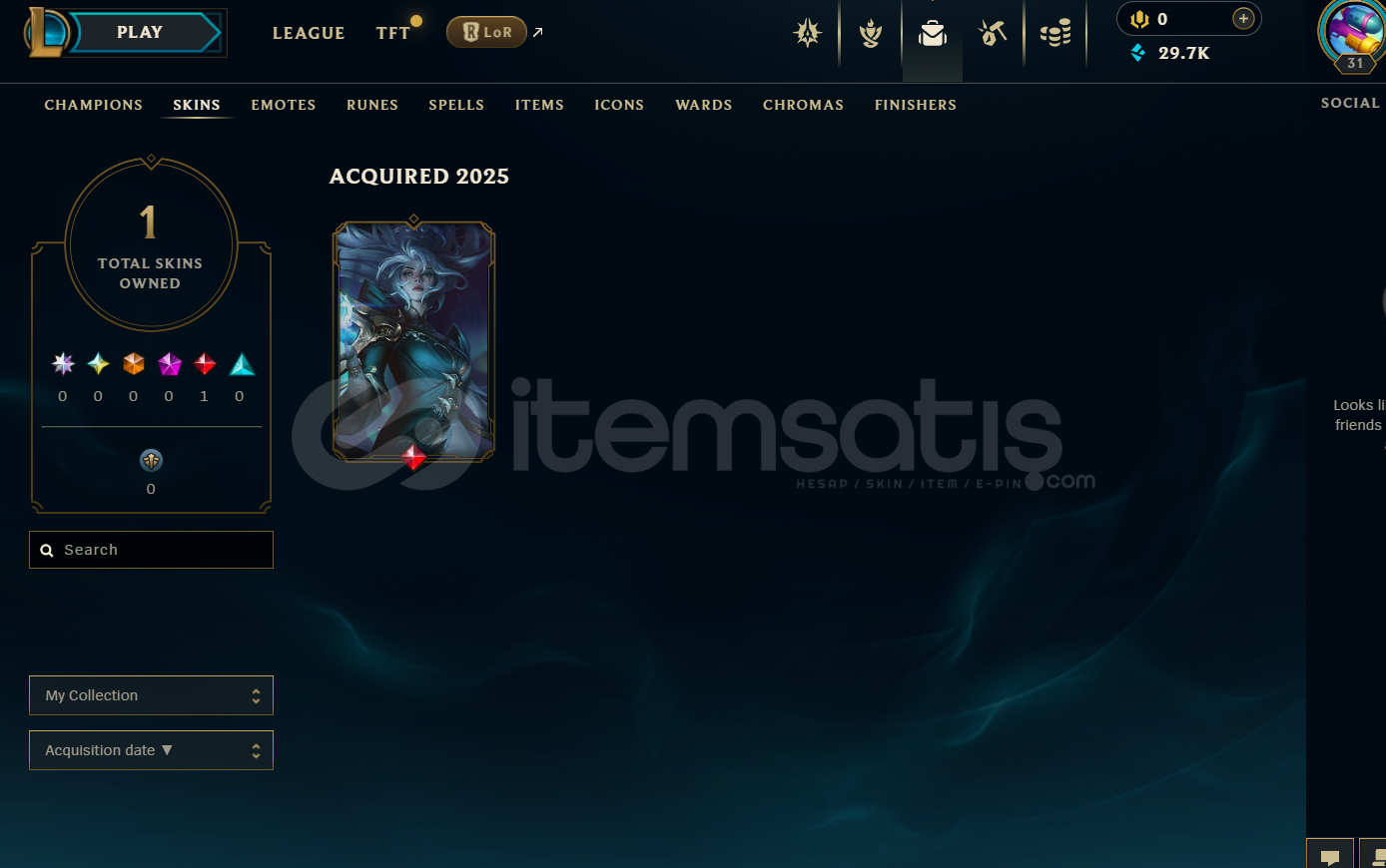 EUW Silver 2 | 1 Kostüm - 29K Mö | LoL Hesap