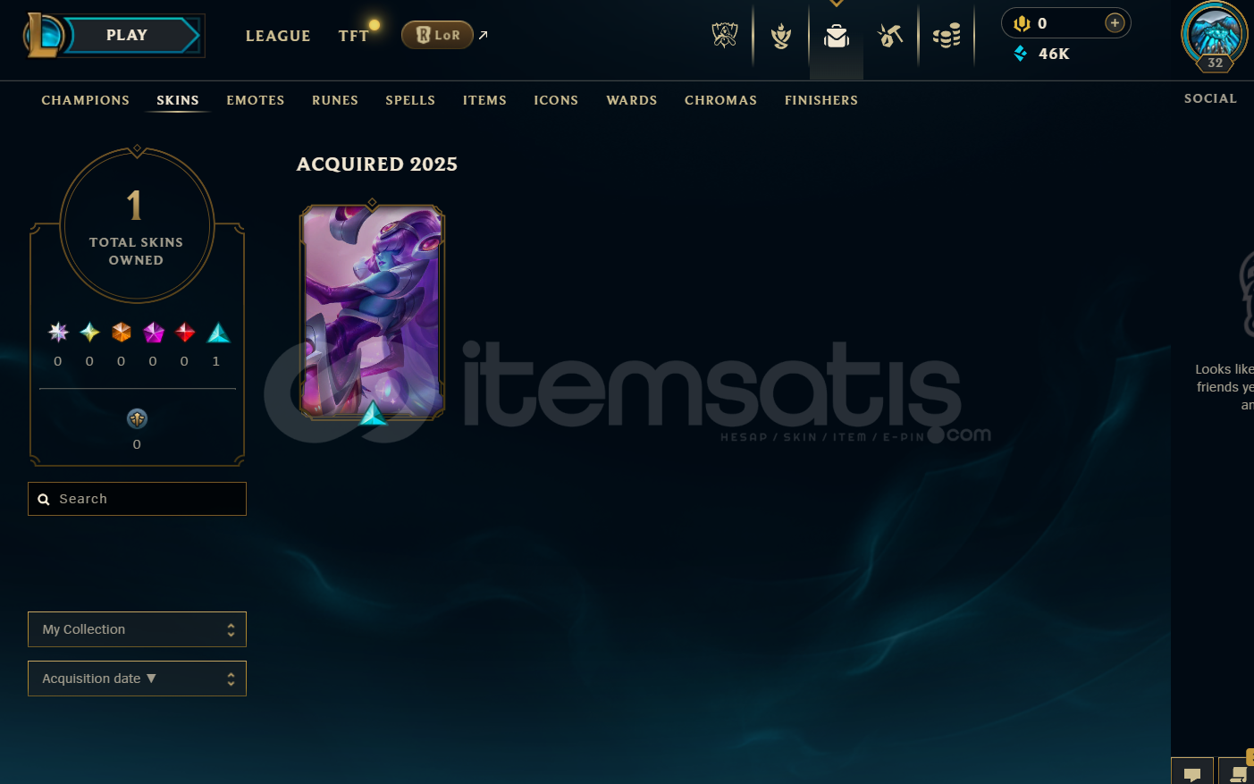 EUW Silver 2 | 1 Kostüm - 46K Mö | LoL Hesap