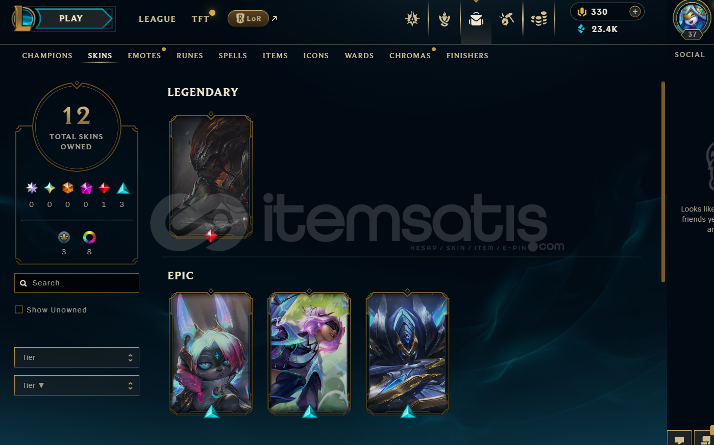 EUW Silver 2 | 12 Kostüm - 330 Rp | LoL Hesap
