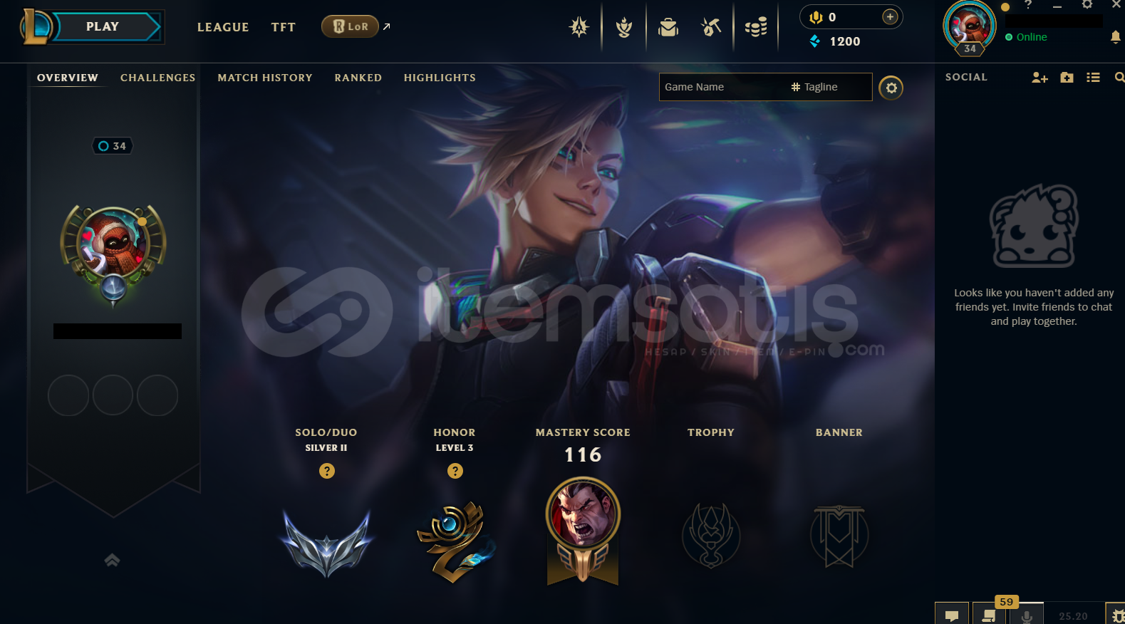 • Hesap EUW Tek/Çift Silver 2 - 54 Lp EUW LoL Hesabıdır.