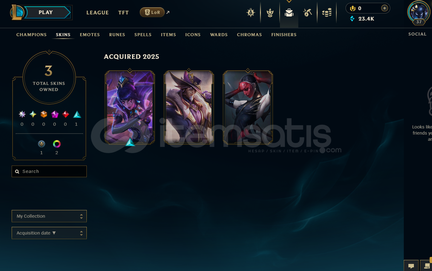 EUW Silver 2 | 3 Kostüm - 23K Mö | LoL Hesap
