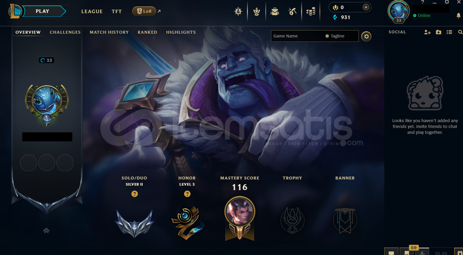 • Hesap EUW Tek/Çift Silver 2 - 65 Lp EUW LoL Hesabıdır.
