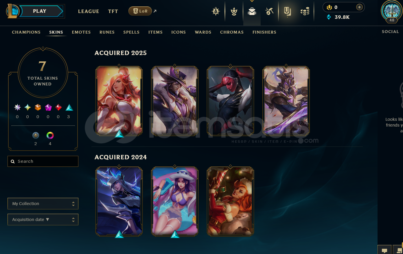 EUW Silver 2 | 7 Kostüm - 39K Mö | LoL Hesap
