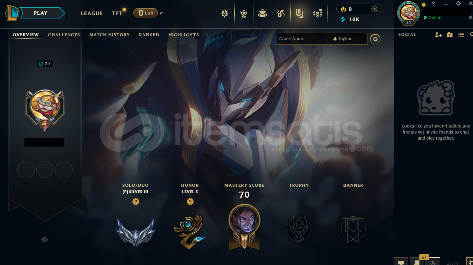 • Hesap EUW Tek/Çift Silver 3 - 76 Lp - 1 Win 3 Lose EUW LoL Hesabıdır.