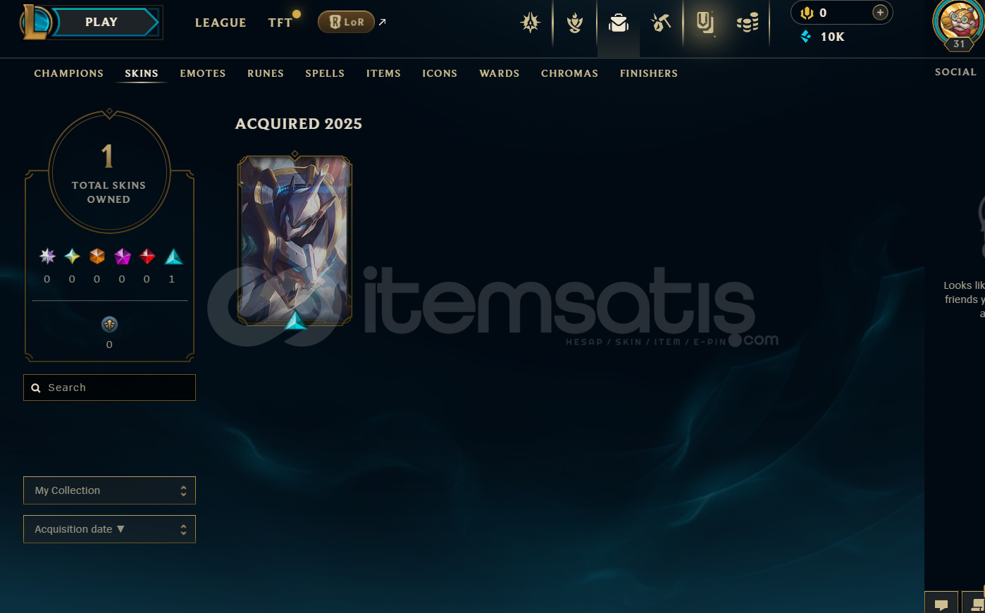EUW Silver 3 | 1 Kostüm - 10K Mö | LoL Hesap