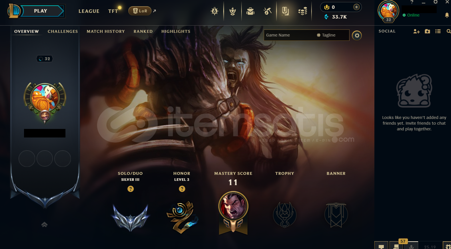 • Hesap EUW Tek/Çift Silver 3 - 32 Lp EUW LoL Hesabıdır.