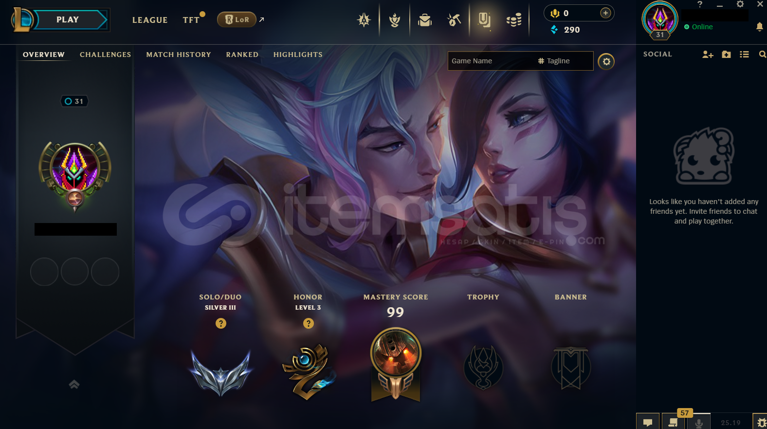 • Hesap EUW Tek/Çift Silver 3 - 39 Lp EUW LoL Hesabıdır.