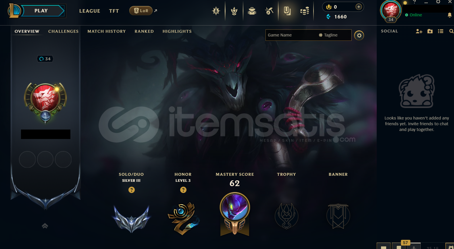 • Hesap EUW Tek/Çift Silver 3 - 64 Lp - Esnek Gold 3 EUW LoL Hesabıdır.