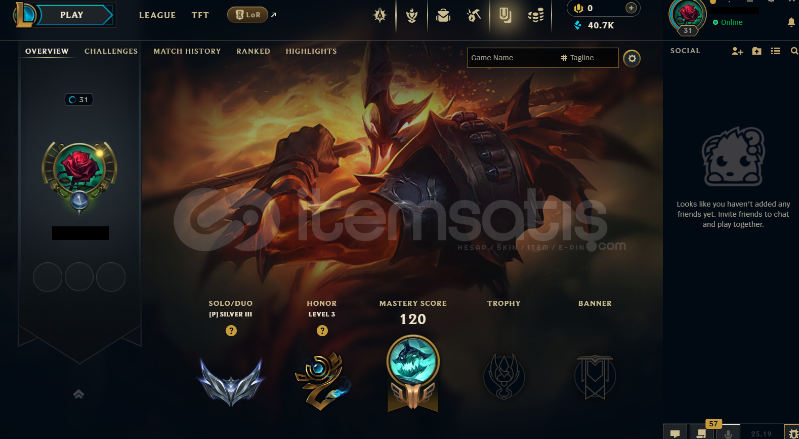 • Hesap EUW Tek/Çift Silver 3 - 64 Lp - 1 Win 3 Lose EUW LoL Hesabıdır.
