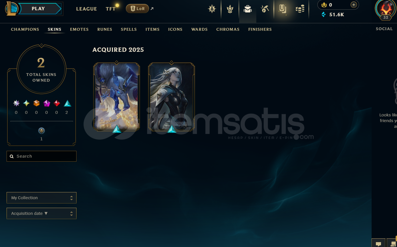 EUW Silver 3 | 2 Kostüm - 51K Mö | LoL Hesap