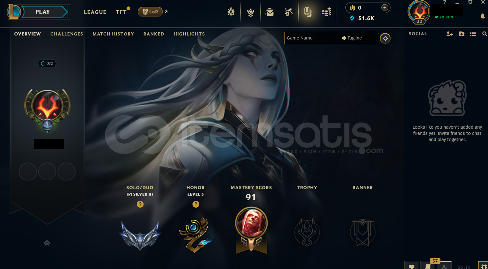 Hesap EUW Tek/Çift Silver 3 - 40 Lp - 2 Win 2 Lose EUW LoL Hesabıdır.