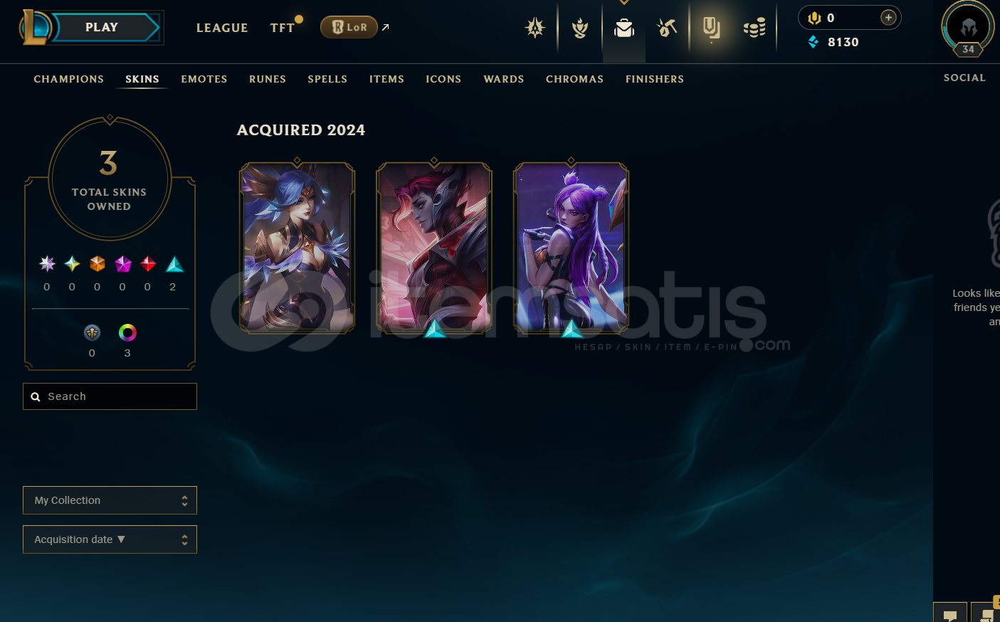 HESAP DETAYLARI:Hesap hiç ban yememiştir ve takdir seviyesi 3 dür.Hesap EUW Tek/Çift Silver 3 - 56 Lp - 1 Win 3 Lose EUW LoL Hesabıdır.İçerisinde 8130 Mavi Öz 3 Kostüm 32 Hero ve 3 Adet İade Hakkı Mevcuttur.HESAP HAKKINDA:Kendi mail adresinize kayıt edebilir, etkinleştirmeyi kaldırabilir ve şifresini değiştirebilirsiniz.Hesaplarımızda hiç bir sıkıntı çıkmama...