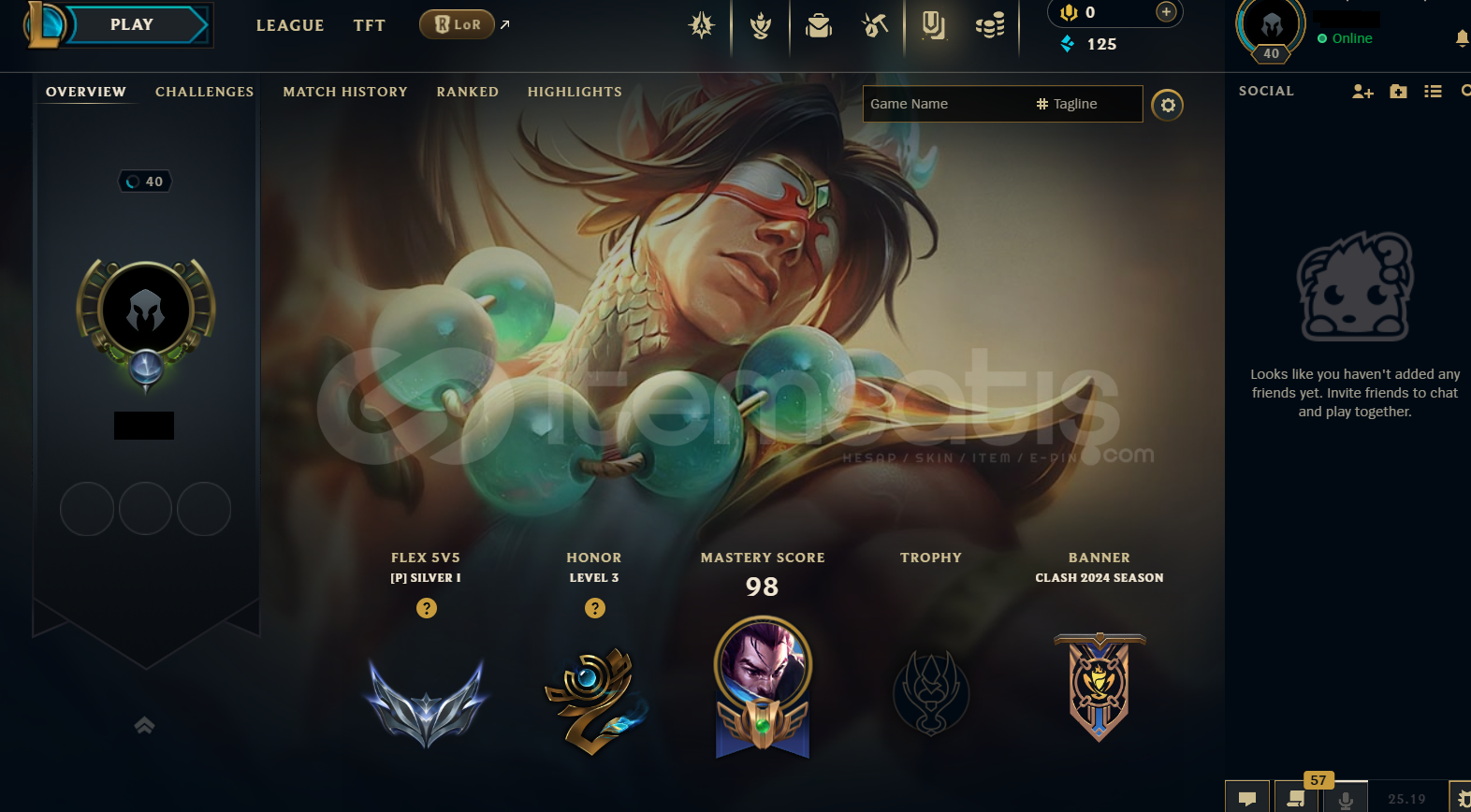 • Hesap EUW Tek/Çift Silver 3 - 71 Lp - 1 Win 2 Lose Esnek Silver 1 - 76 Lp EUW LoL Hesabıdır.
