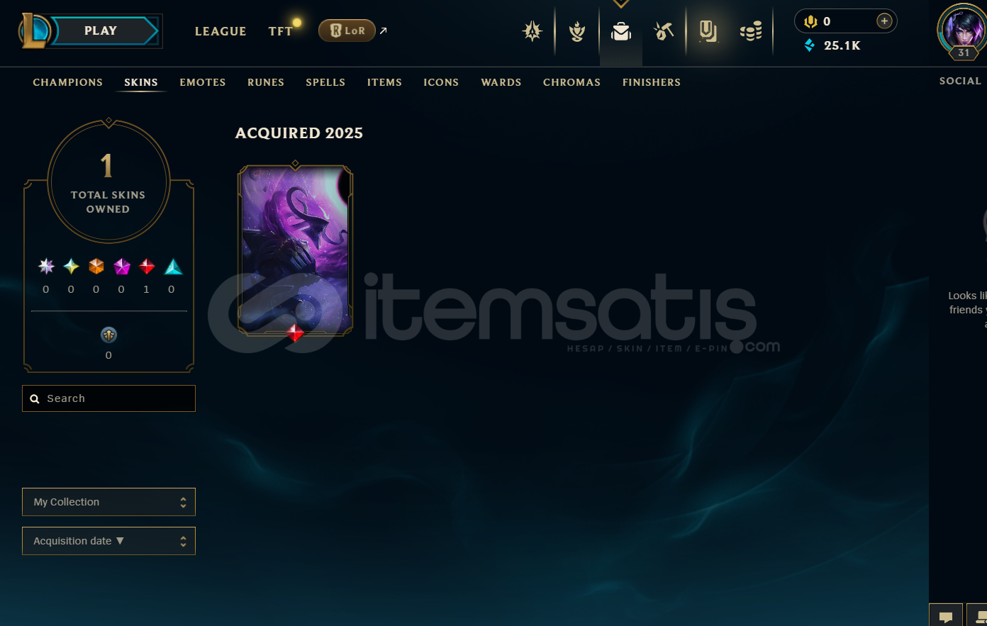 EUW Silver 4 | 1 Kostüm - 25K Mö | LoL Hesap