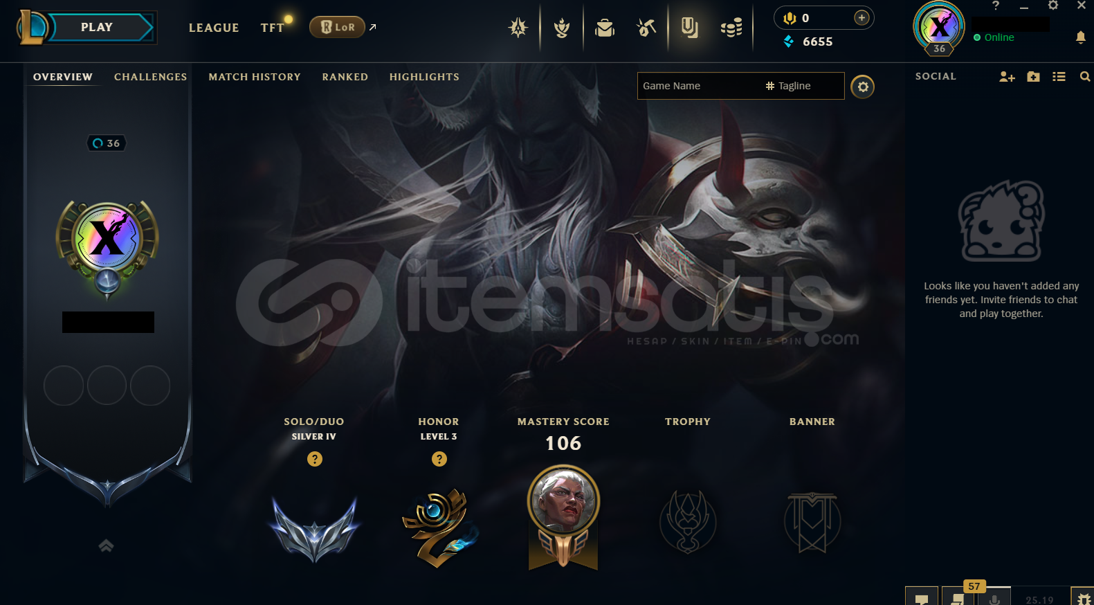 Hesap EUW Tek/Çift Silver 4 - 38 Lp - 66 Winrate 10 Win 5 Lose EUW LoL Hesabıdır.